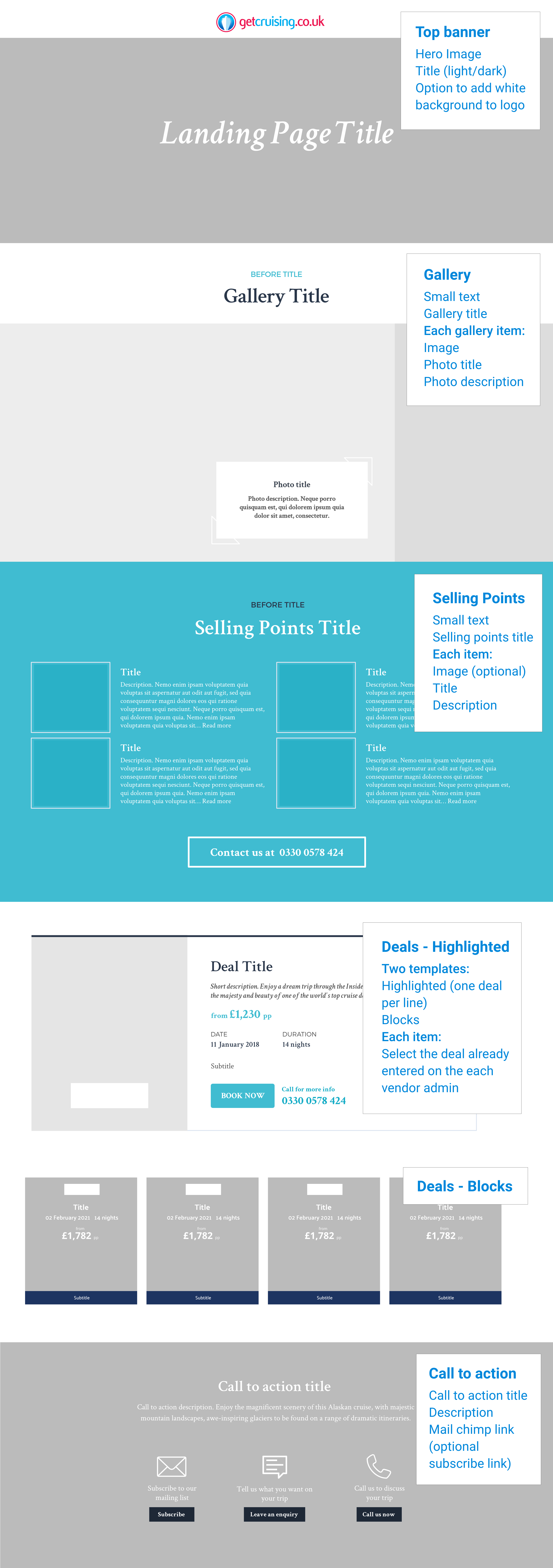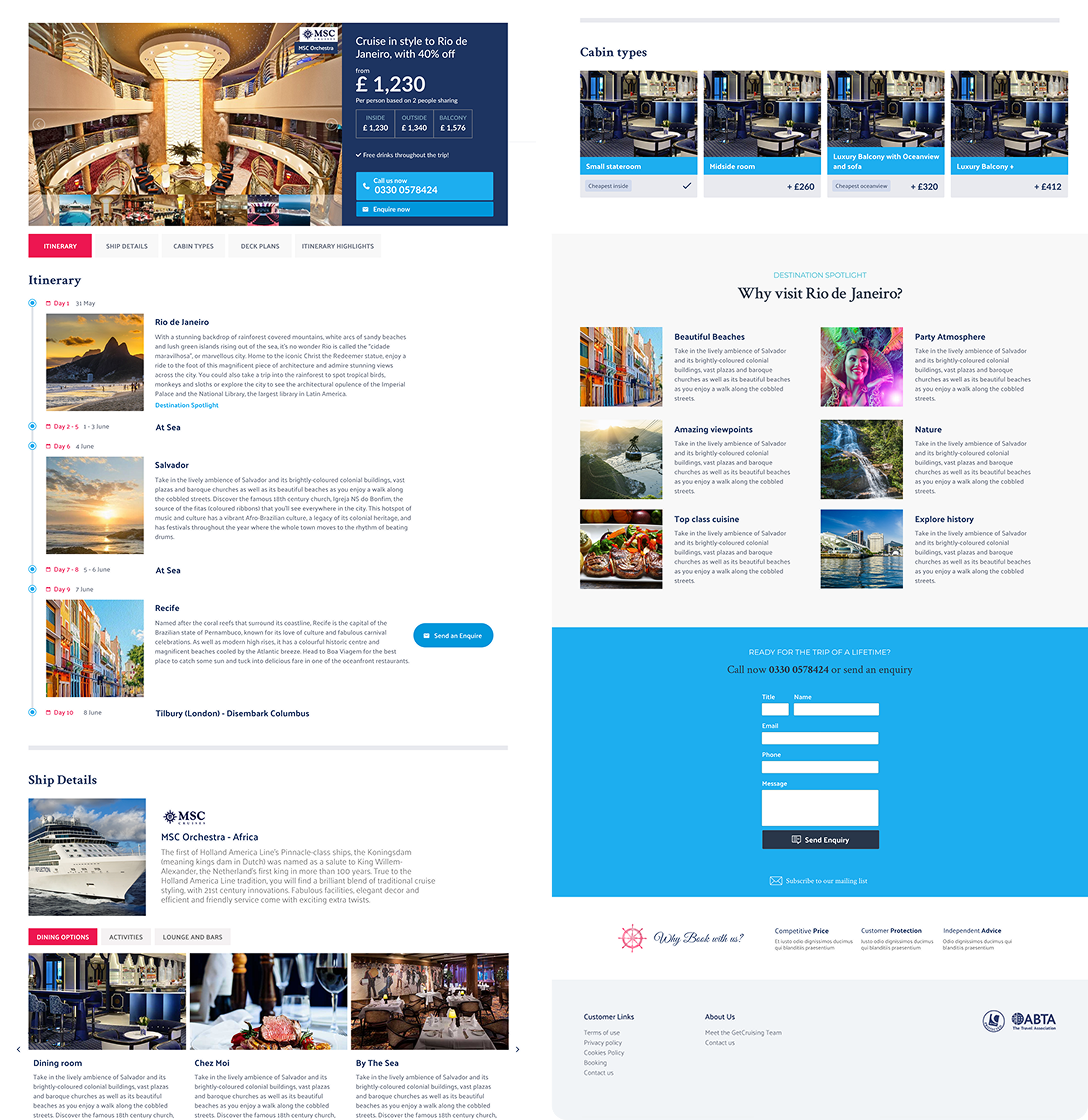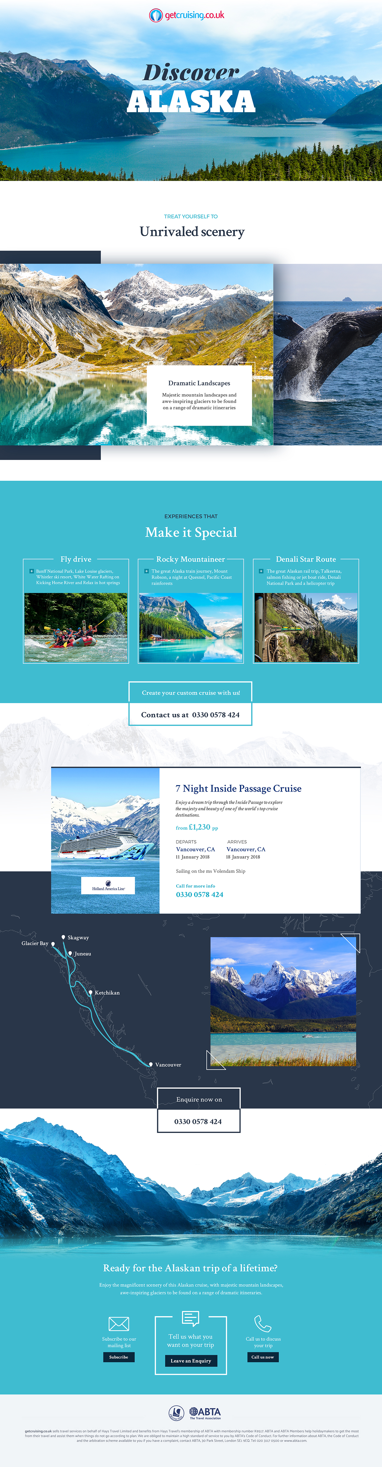 The images below are an example of a cruise category (left) and the ability to search within that category. And on the right you have the detail of the cruise the user chose. It is a long page because at this stage we are “selling the sizzle”, all the benefits of not only the cruise but the destination.