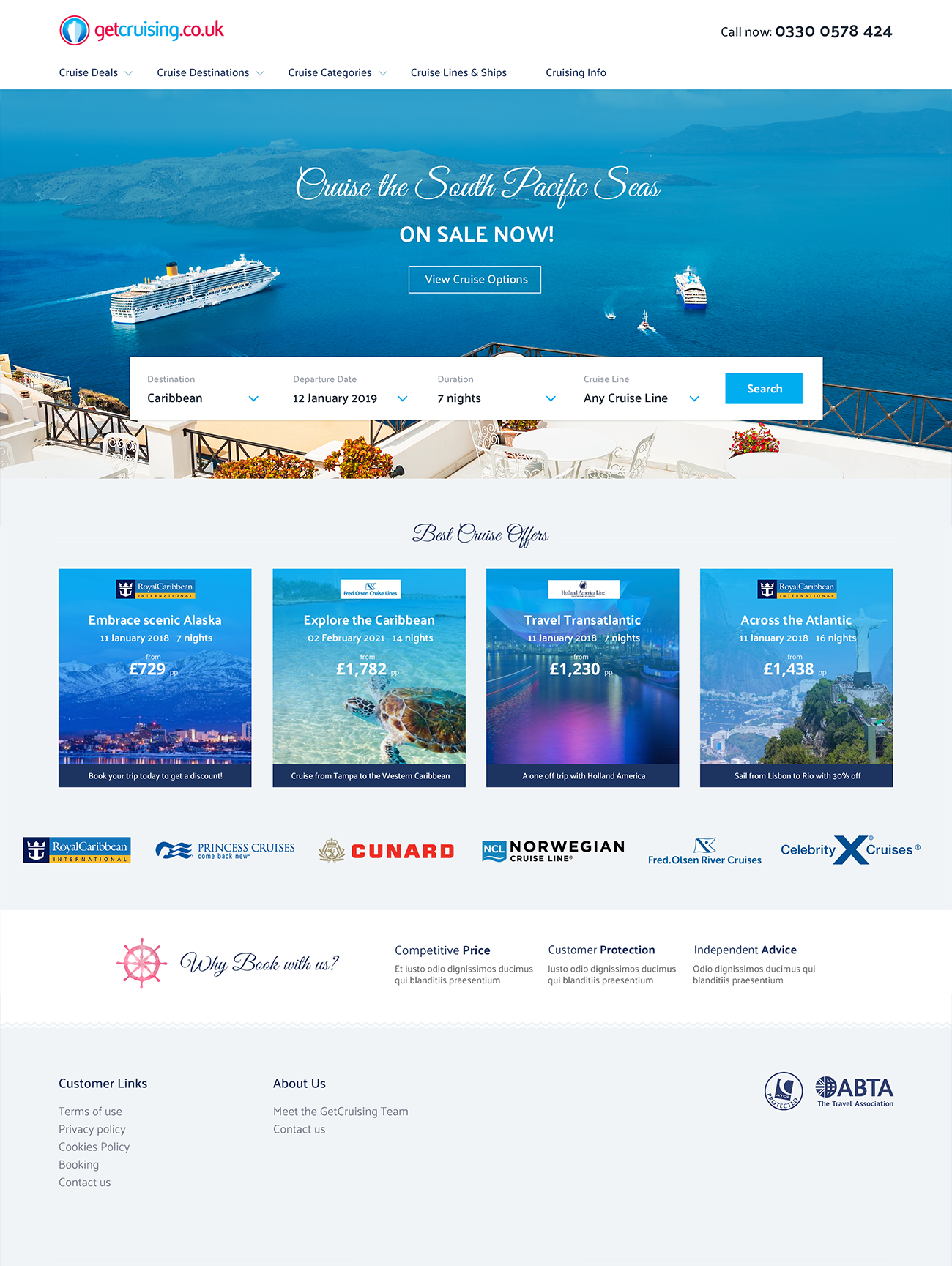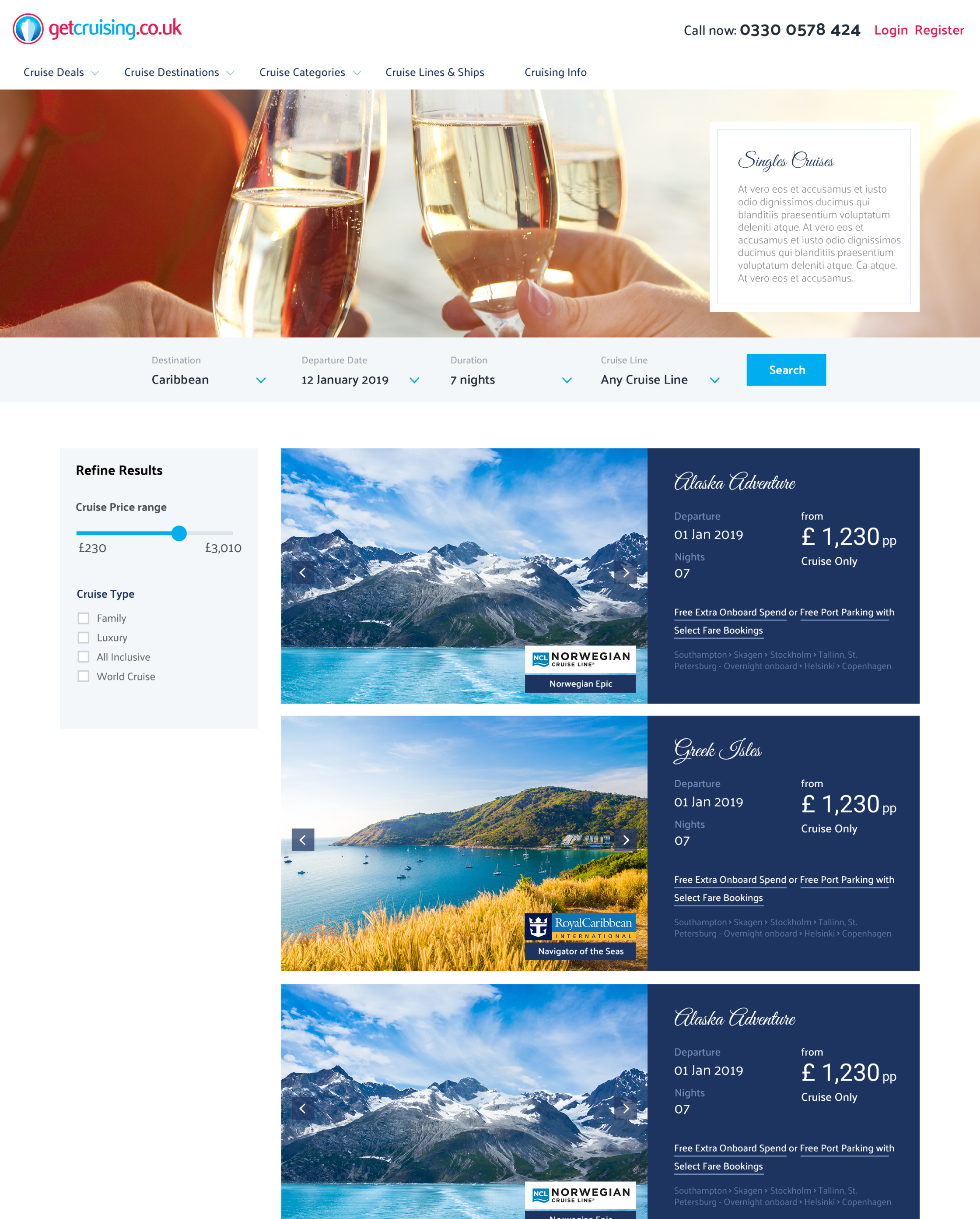 I redesigned the GetCruising website and introduced the new search system. GetCruising.co.uk is one of the many travel websites I worked on over the years. A clean and elegant redesign was needed to target fans of luxury cruising.
