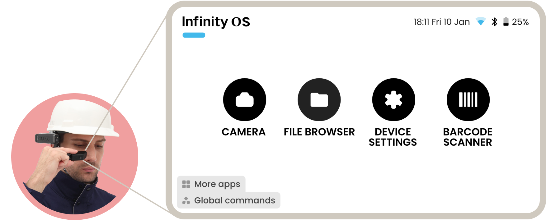 The main challenge was to create a user experience that makes this new unique hands-free device intuitive and enjoyable to use. As a productivity product for industries where workers are required to use their hands, this device allows them to, purely via voice, access documents, remotely call experts or take photos and videos of what they see.
